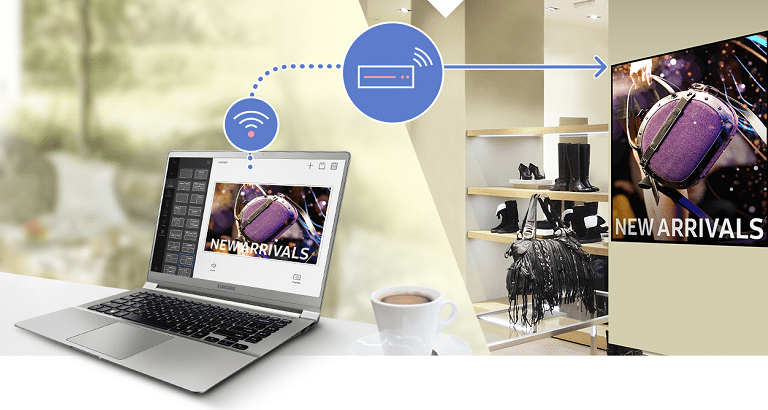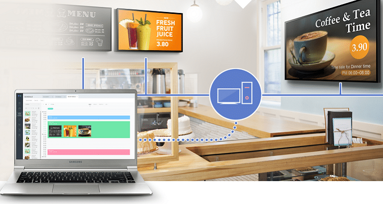 Con MagicInfo Server y MagicInfo Author, se podrá integrar prácticamente cualquier tipo de contenido: paginas web, archivos flash, imágenes, video, documentos, etc.y se podrá gestionar el contenido desde cualquier ubicación con un simple acceso a Internet, con la posibilidad de establecer programaciones horarias y múltiples canales Asimismo, MagicInfo permite la monitorización y gestión remota de los parámetros de los monitores profesionales.